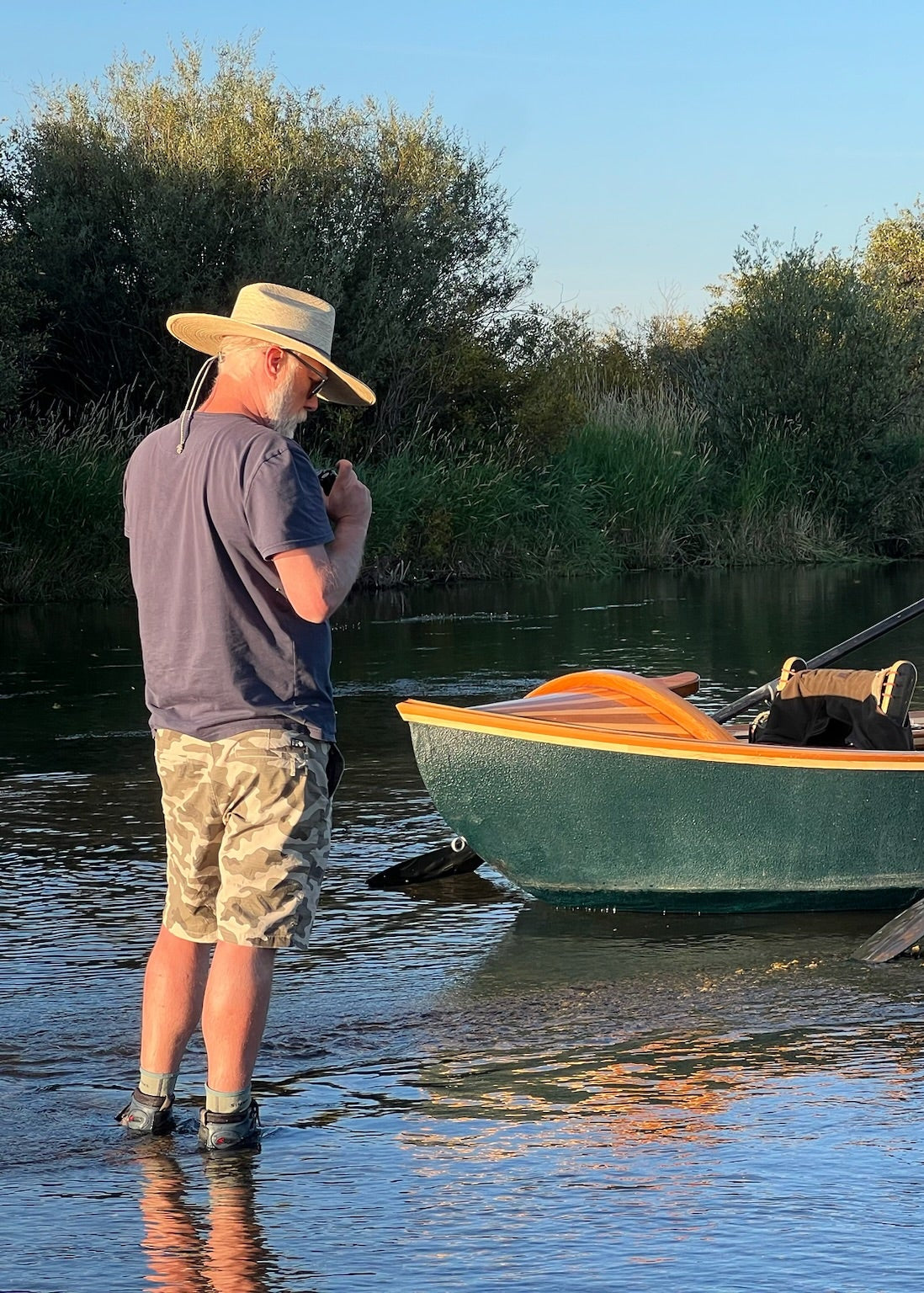 After rowing various boats, Phil found them all lacking—too tipsy, too heavy, or too big for the narrow, shallow waters he loved. Drawing on his construction background, he set out to create a drift boat tailored precisely to his needs. It had to be lightweight yet sturdy, capable of navigating mere inches of water without sacrificing stability.“I needed a boat that, if I had to get through four inches of water on the flat, I wanted to be able to do that,” Phil explains.