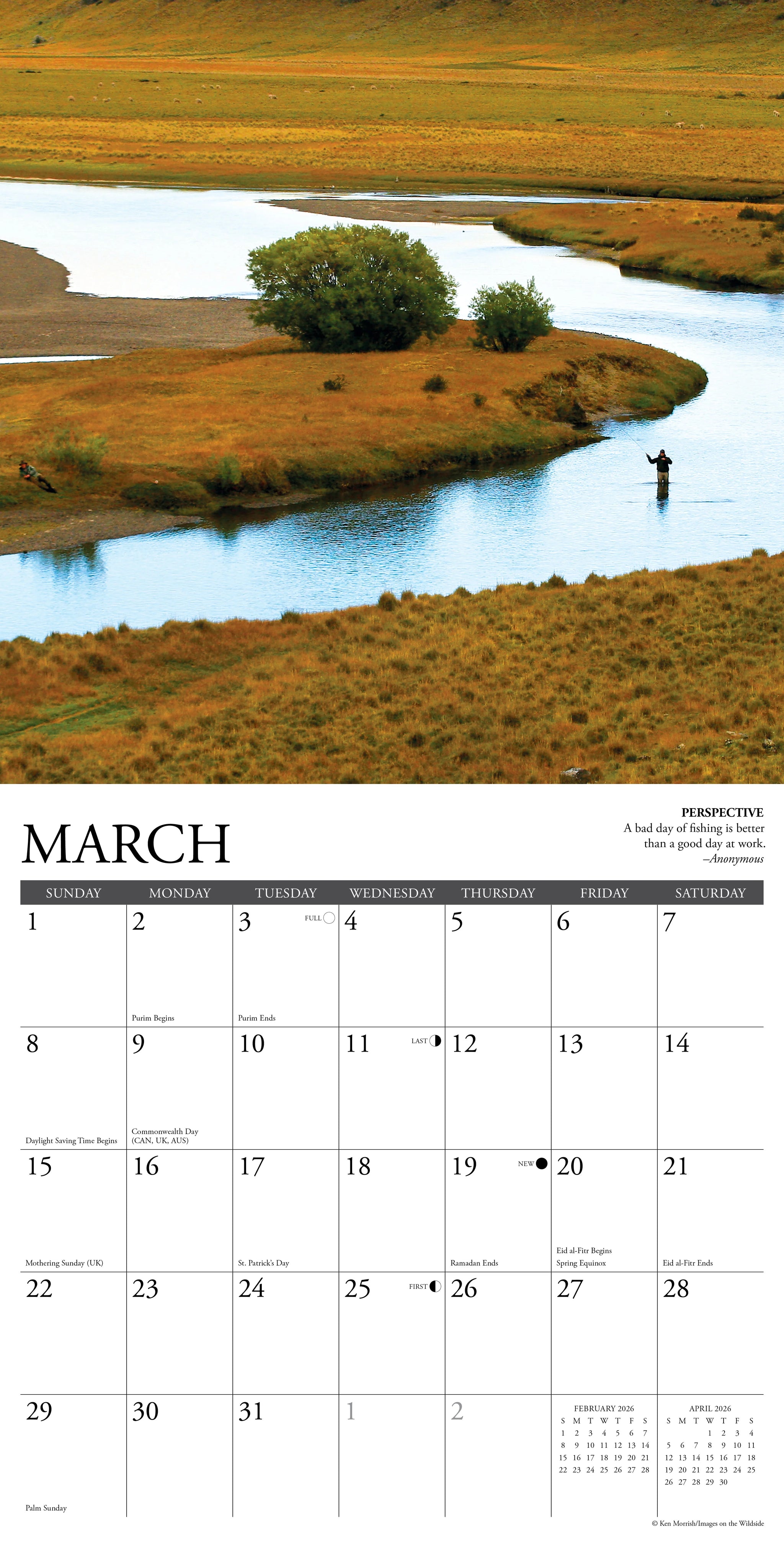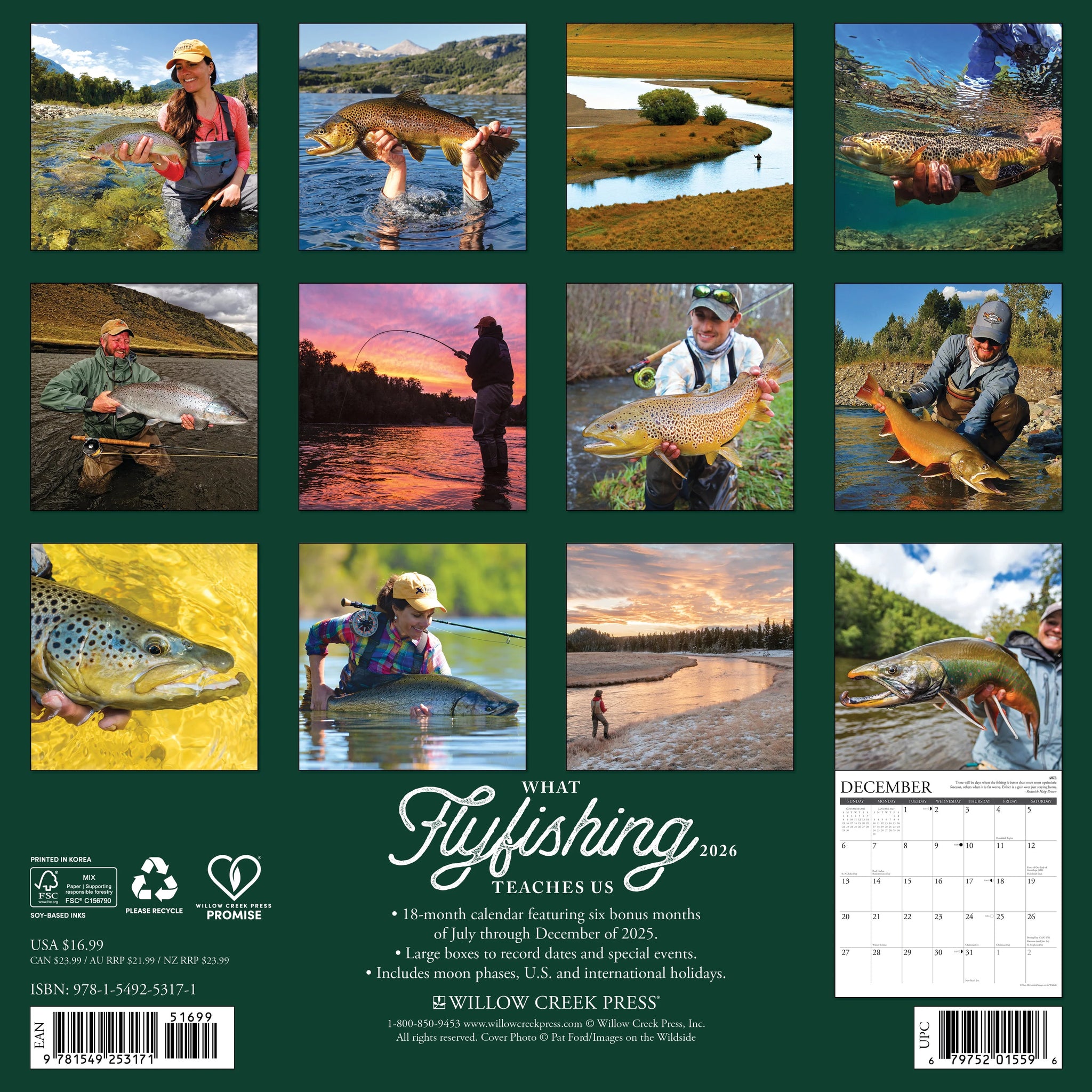 Fly fishermen gain more than just angling skills on the water—lessons in frustration, anger, humility, and even lying are all part of the experience. This calendar captures those truths with lighthearted words and vivid full-color photos, making it both entertaining and useful.