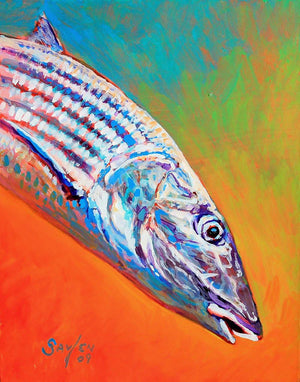 Description: "Bonefish Portrait", contemporary stretched canvas art.