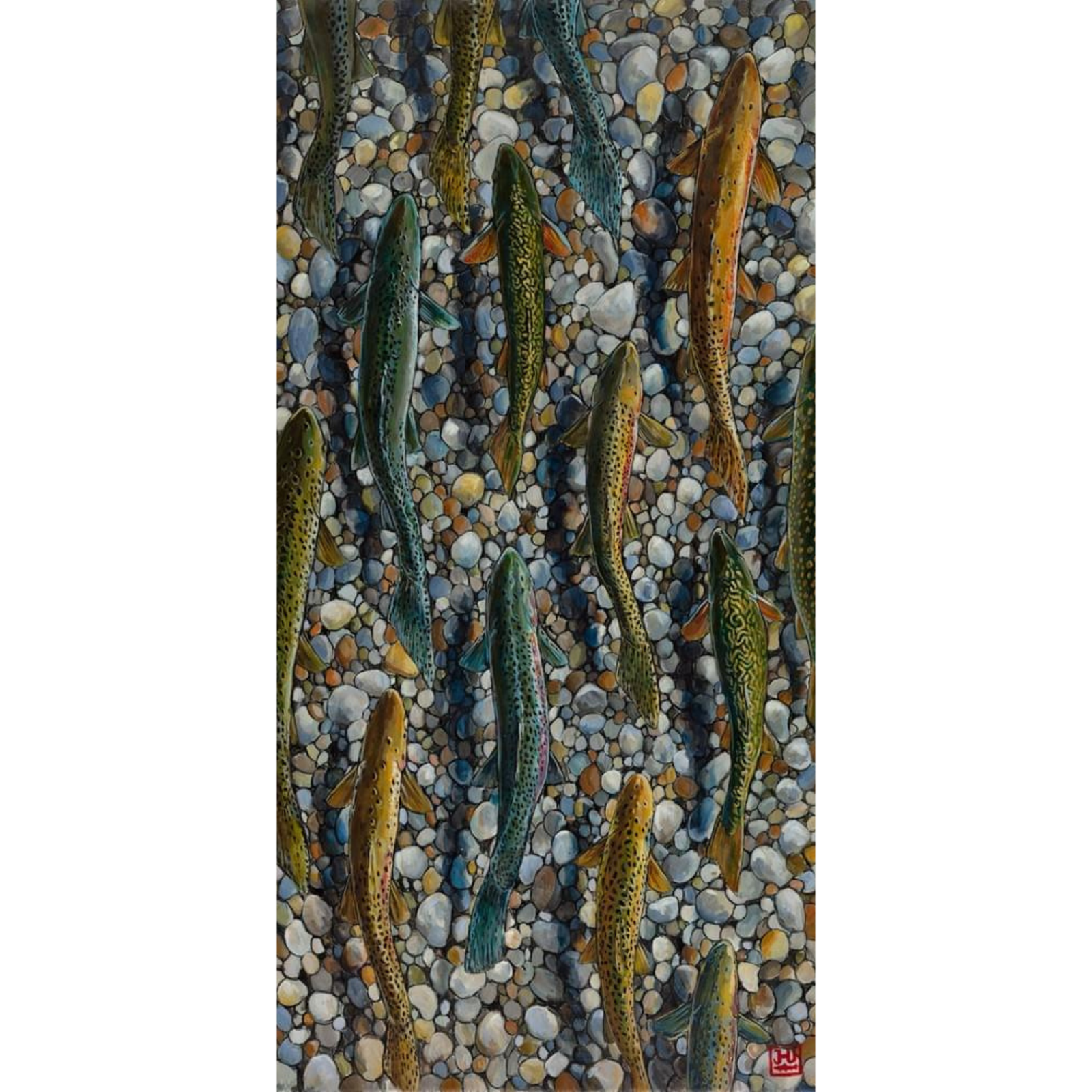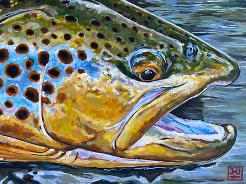 Josh Udesen is a teacher, fly fishing guide, and self-taught artist whose bold, nature-inspired work captures the movement and energy of rivers, fish, and wild places.